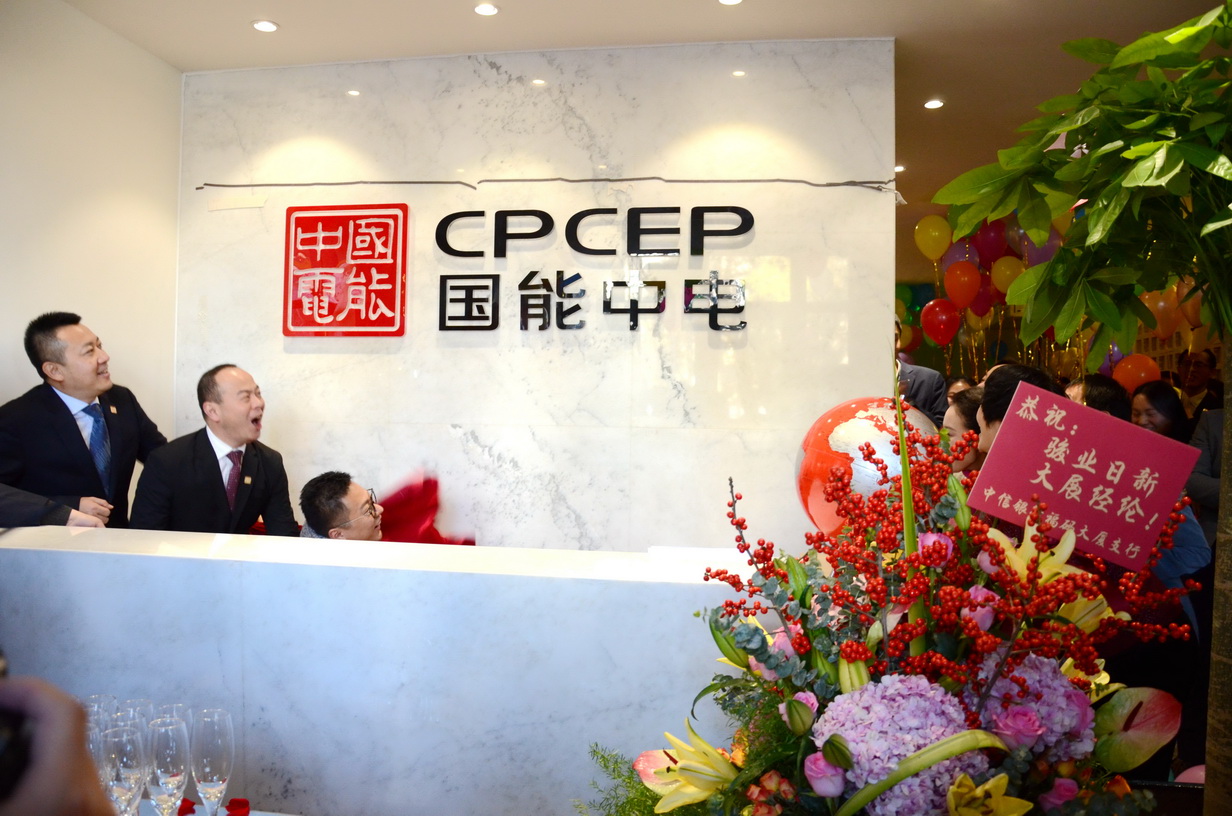 國能中電集團(tuán)領(lǐng)導(dǎo)一起舉行了新辦公樓“揭牌”儀式。