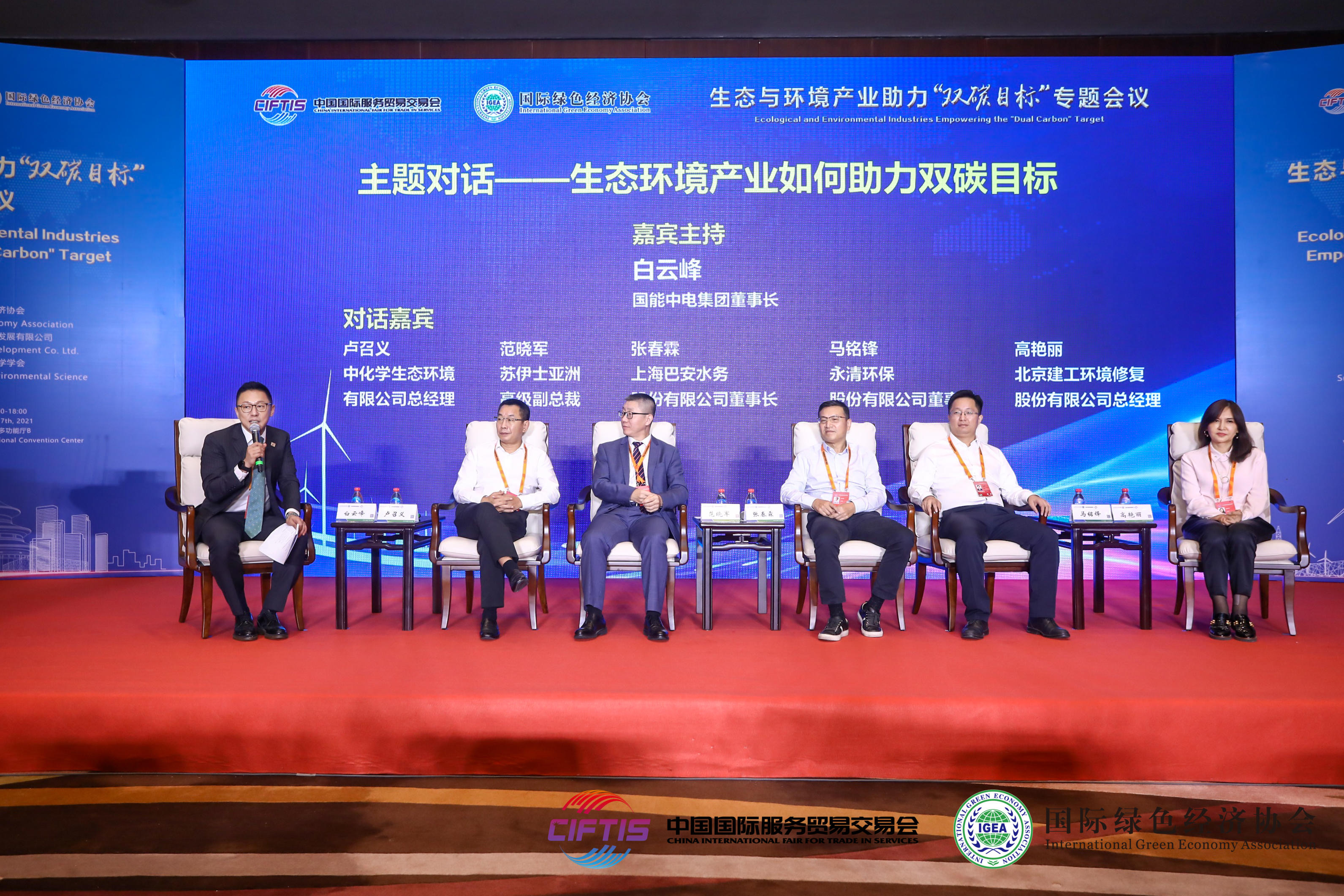 9月7日,2021中國國際服務(wù)貿(mào)易交易會重要同期活動之一的綠色發(fā)展系列會議之“生態(tài)與環(huán)境產(chǎn)業(yè)助力雙碳目標(biāo)”專題會議在國家會議中心舉行,國能中電集團(tuán)董事長、國際綠色經(jīng)濟(jì)協(xié)會副會長白云峰應(yīng)邀出席。